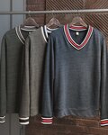 Tri-color accent give this V-neck a fresh perspective.