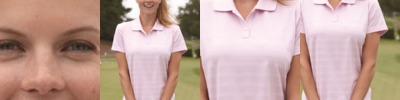 - Narrow ladies' placket with four dyed-to-match pearlized buttons