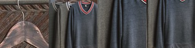 - Contrast shoulders, side panels and inner collar band