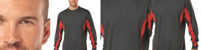 - 100% polyester textured B-mesh contrast side and sleeve panel inserts and piping