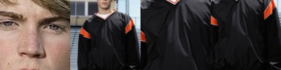 Athletic cut hoodie stands out on the field with contrast color underarm panels and shoulder inserts.