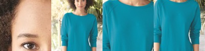- Double-needle stitched neckline, bottom hem and sleeves