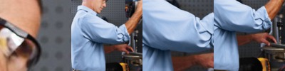 - Nylon dobby textured fabric overlays on shoulders, yoke and adjustable cuffs