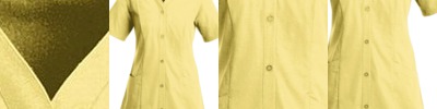 - Two woodtone buttons on a clean-finished placket with a reinforced box