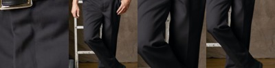 - Two slack style front pockets, two set-in welted hip pockets