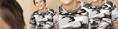 Playground warriors give a military edge to their after-school style in a rugged T-Shirt with camo print.