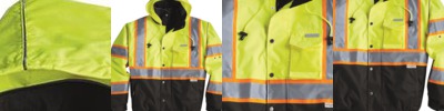 - Reflective piping on collar, shoulders, hood and sleeve seams