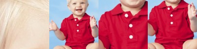 Cute creeper looks like daddy’s golf shirt, with a three- button placket.