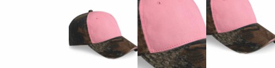 Unstructured, six-panel cap with a distressed frayed look has a touch of feminine pink.
